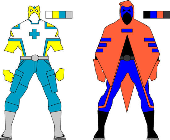 I may have mentioned that I am a member of the forums on Comic Book Resources. There’s an annual  Super Hero design/redesign competition on the Artist and Writer Showcase section of the forums called Project CBRunway and this is the 7th “season.”  I’ve participated in the competition a few times and it’s something I look forward to every year. This year hopeful participants had to submit basic costume designs for a hero and villain based on ourselves using a basic template model sheet. I went with the basic themes of positivity and negativity because these are drives and attitudes we all share, but when the mood shifts too far in one direction, you aren’t behaving like your normal self. First I got to work on the positive aspects using the mathematical symbol for plus(+) as an insignia and using bright colors, baby blue, white and yellow to show a positive attitude. And I used the minus(-) sign for the villain and inverted the colors on the computer to come up with that color scheme.  Anyway, here’s my submission.